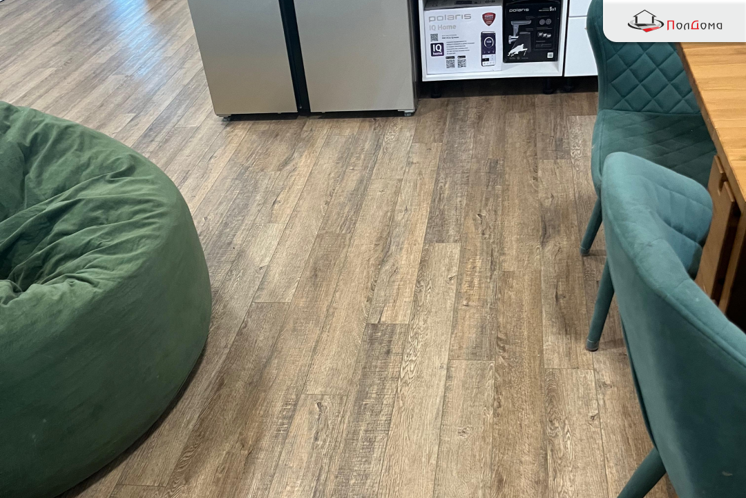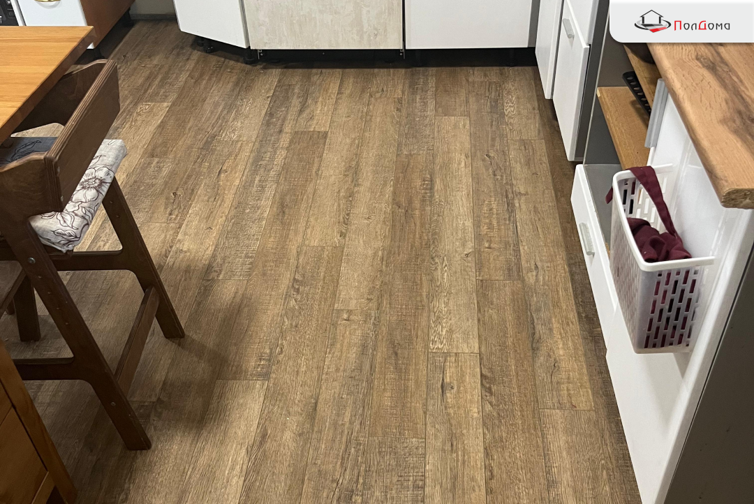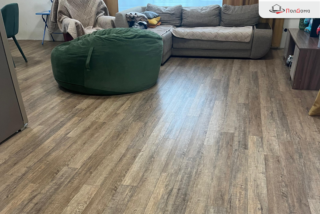 Выбран SPC "Bonkeel" Style Дуб Махо с реалистичной текстурой дерева, который добавил интерьеру теплоты и уюта.